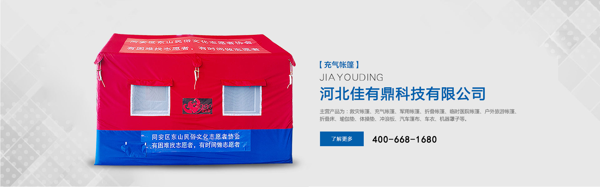 河北佳有鼎科技有限公司原為北京五環(huán)精誠帳篷有限責任公司多年來專注于應急救災防護和戶外用品的研發(fā),是一家集研發(fā)、設計、生產(chǎn)、銷售、服務于一體的綜合型公司。